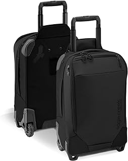 The Osprey Transporter is a lightweight, durable carry-on with excellent organization and water-resistant NanoTough fabric. Its 2-wheel design and oversized wheels excel on various surfaces, while the ergonomic curved back optimizes airport maneuverability. However, some travelers prefer 4-wheel designs for easier rolling with heavy loads.