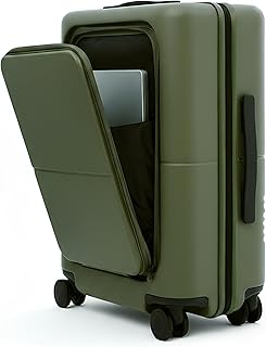 The July Carry On Pro is a premium hardshell carry-on that combines aerospace-grade polycarbonate durability with modern tech features like built-in USB charging and a front laptop pocket. Users consistently praise its smooth spinner wheels, thoughtful organization, and robust construction, making it an excellent choice for tech-savvy travelers willing to invest in quality luggage.