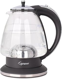 The Capresso H2O Glass Rapid-Boil Kettle combines speed and style with its patented heating dome that boils water in under a minute. Users praise its attractive glass design, quiet operation, and long-term reliability, though some report concerns about the stiff lid and plastic switch durability over time.